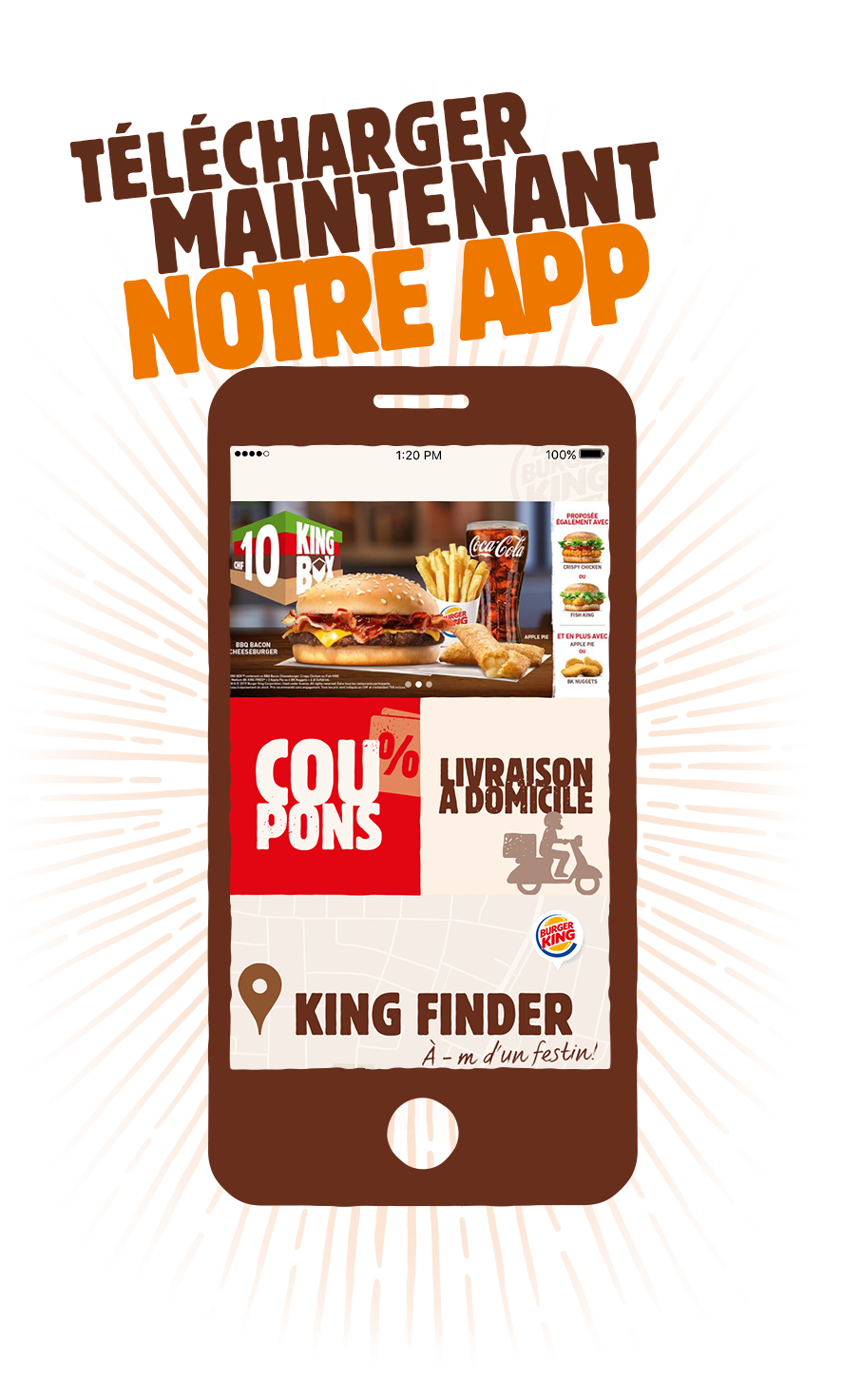 Le KING Finder est non seulement devenu plus rapide et plus intuitif, il te montre aussi directement les restaurants participants pour tous les coupons & actions.
