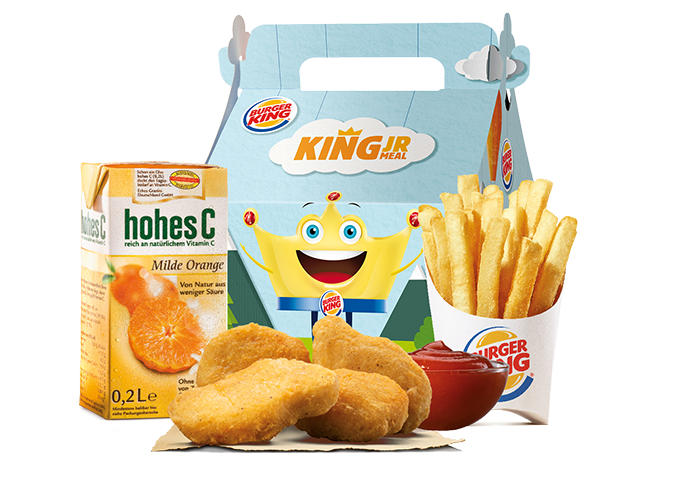 Nous sommes conscients de l'importance d'une alimentation saine pour nos enfants. C'est pourquoi, signataire de l'EU Pledge, BURGER KING® s'engage volontairement à ne faire de la publicité que pour des produits pour enfants qui satisfont aux directives alimentaires de l'EU Pledge. Cela signifie entre autres : moins de 560 Kcal par menu et le renoncement à des colorants et arômes synthétiques. Pour notre King Jr. Meal, nous avons développé quatre menus différents répondant à ces critères – pour chaque goût et pour la bonne santé de nos enfants.